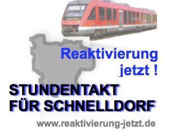 Die Initiative Reaktivierung-Jetzt! Initiative für mehr Schienenverkehr im Landkreis Ansbach hat für einzelne Bahnstationen Forderungen erarbeitet.  Hier finden Sie Informationen zur Bahnhalt Schnelldorf.  Kurz Stundentakt für Schnelldorf.